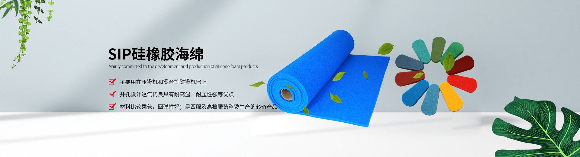 ????我公司生產的硅膠海綿具有耐高溫、耐壓、透氣性能好、抗撕拉、使用壽命長、環(huán)保等特點,主要適用于服裝干洗、水洗熨燙設備,如壓燙機和燙臺等。另外我們也提供各種燙氈、罩布等整燙專用墊料,客戶可根據不同熨燙工藝選擇不同的搭配組合,滿足高品質的熨燙要求。